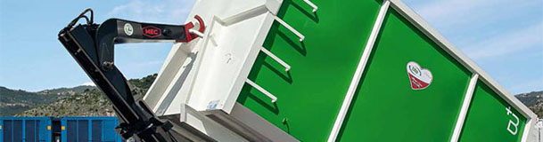 A hooklift truck uses a hydraulic hook arm to load/unload large bins and containers (typically 10m³ to 30m³+) using rails. Hooklifts are designed for high-volume waste and heavier materials like rubble and demolition waste.